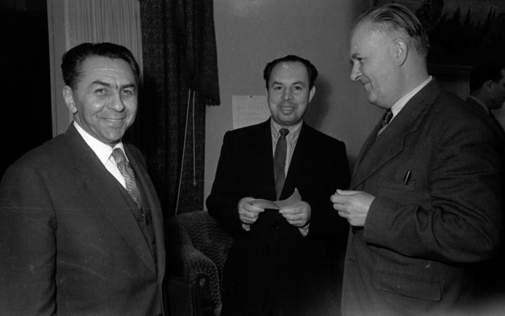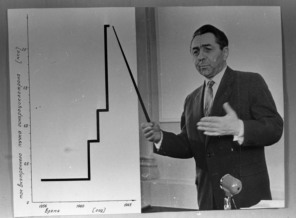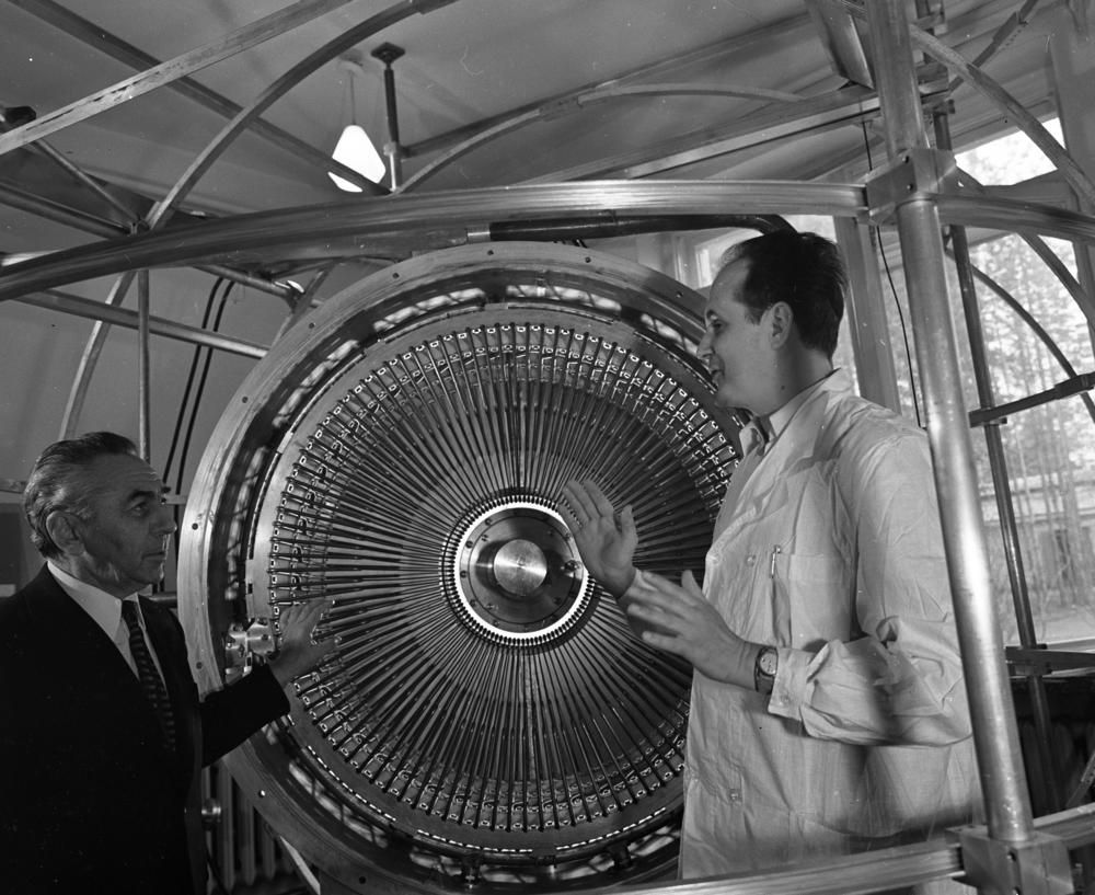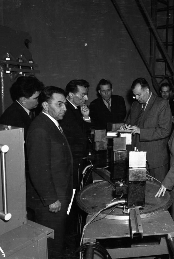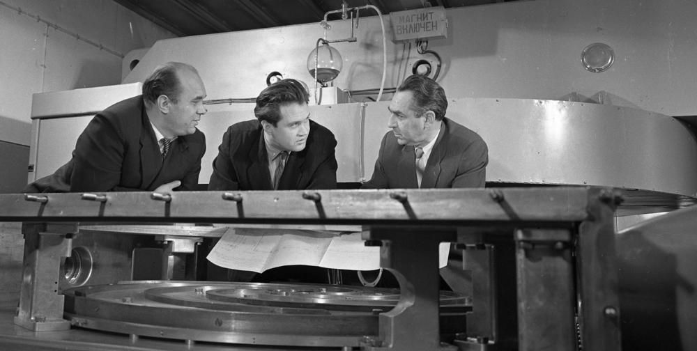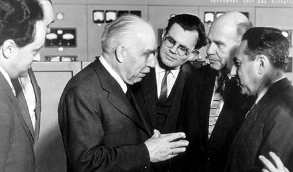 Визит Нильса Бора (в центре) в Дубну курировал Лев Лапидус (крайний слева). Крайний справа – Венедикт Джелепов, руководитель Лаборатории ядерных проблем ОИЯИ, насчитывавшей полторы тысячи сотрудников