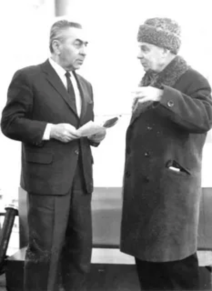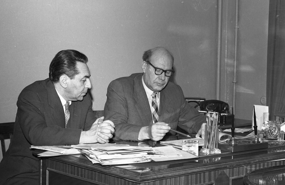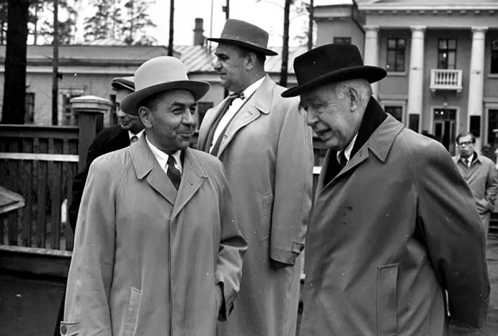 И. В. Курчатов и член-корреспондент АН СССР В. П. Джелепов, 1959 г.