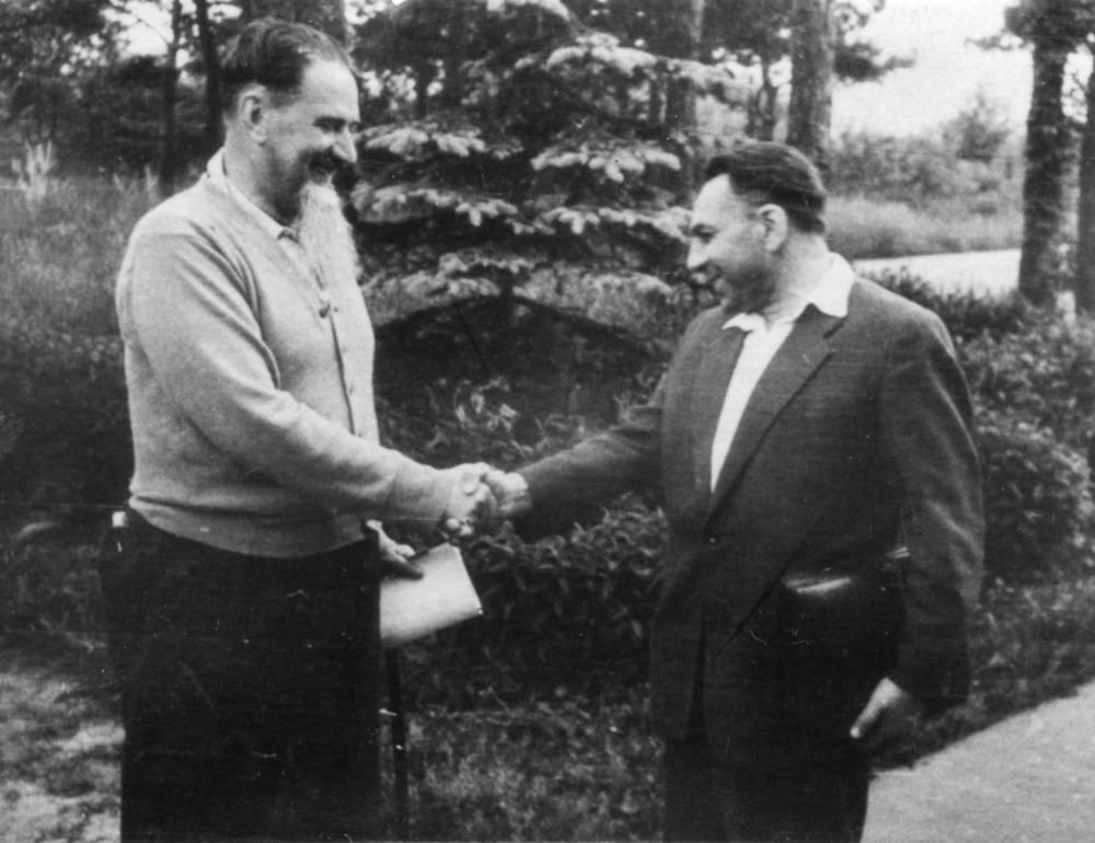 Школьный учитель В. П. Джелепова Л. М. Белоруссов в гостях у своего ученика в ЛЯП ОИЯИ, 1959 г., фото из фондов Солигаличского краеведческого музея им. Г. И. Невельского